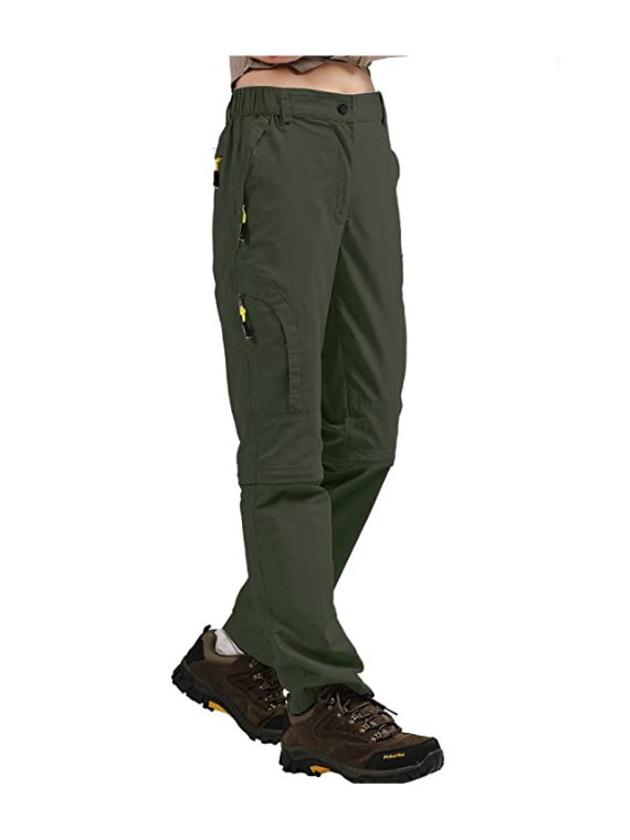 Amazon has many great (and affordable) options for men and women. You'll want to find hiking pants that are loose-fitting and fast-drying in khaki, olive, brown, or black. As I mentioned earlier, you will regret colorful clothing as it will attract bugs and make wildlife tracking more difficult. You will also regret yoga pants because bugs will bite through them, they feel suffocating in the heat, and dirt clings to them immediately.